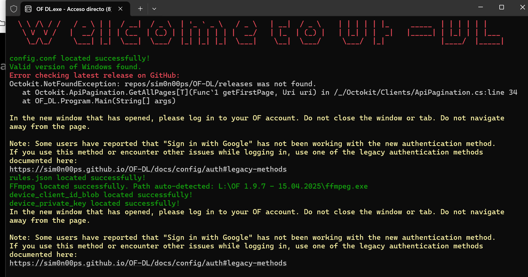 I can't download since some days ago, the program displays this message: