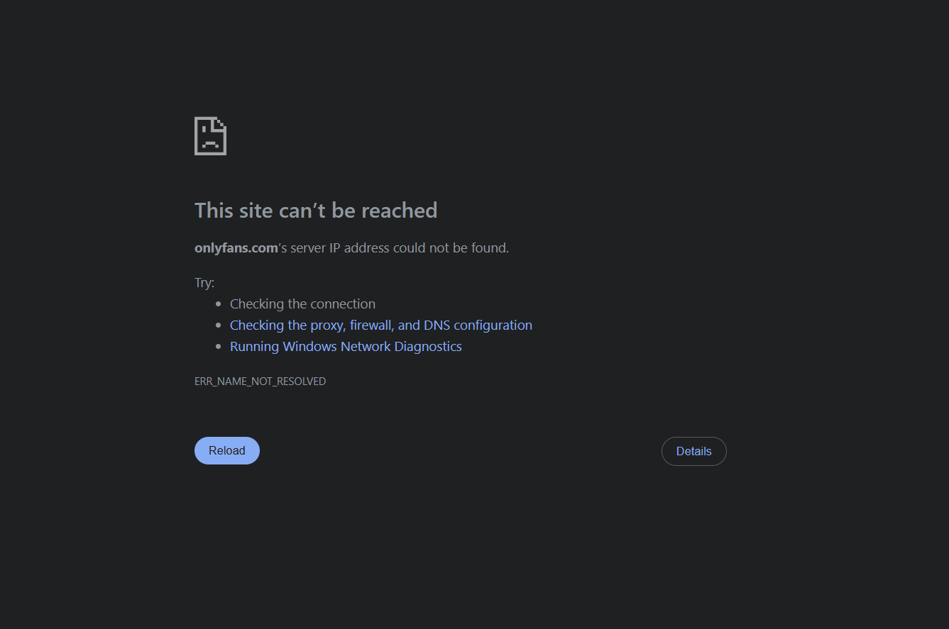 ERR_NAME_NOT_RESOLVEDwhen trying to navigate to Onlyfans.com, but otherwise functions as a normal browser and can load other webpages.OS: Windows 11