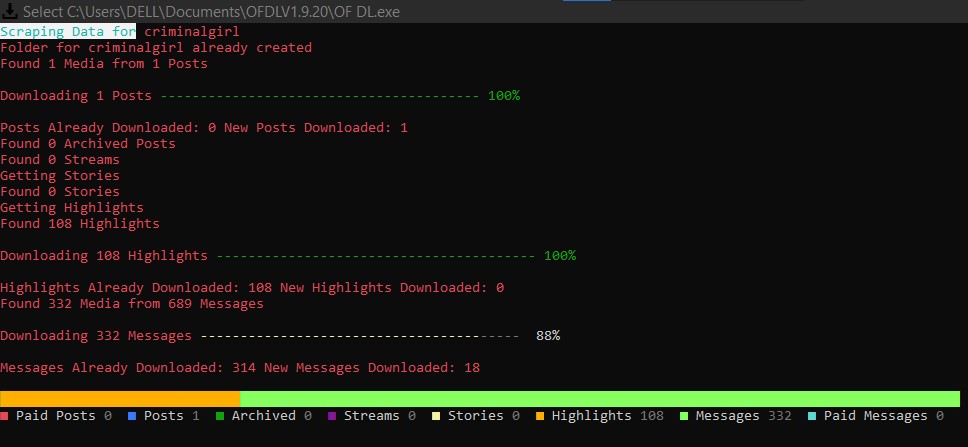 There's a problem with the program during the download; it shows me that the download isn't 100% complete, but not all creators O.F are listed, only some. I don't know what the problem is.