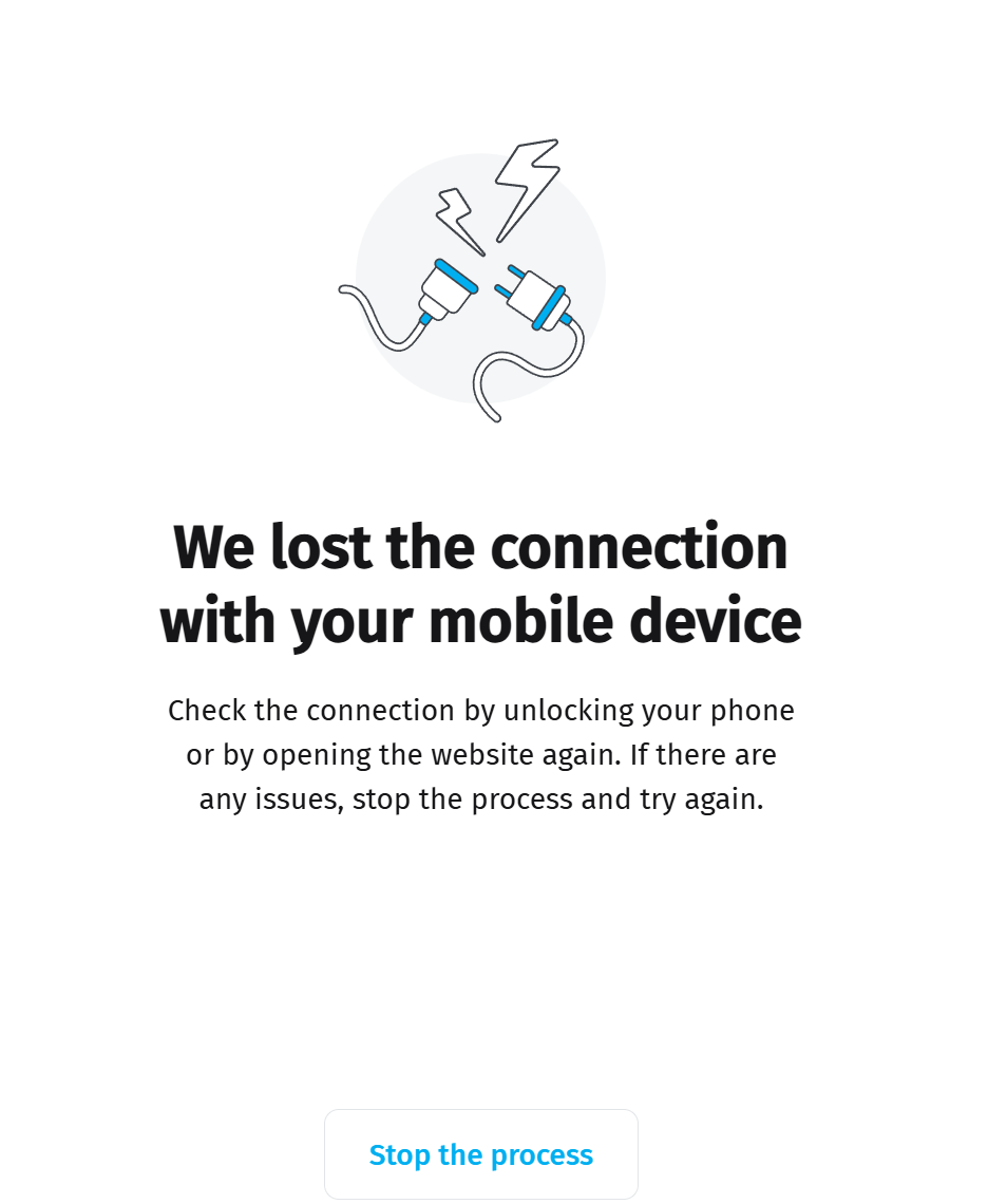 Infinite loading, sometimes cut by the "We lost the connection with your mobile device" and then goes back to infinite loading.